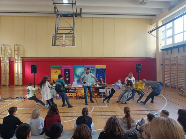Játékos fizika címmel került sor számtalan egyszerű, de nagyon látványos és tanulságos kisérlet bemutatására a diákok legnagyobb örömére.