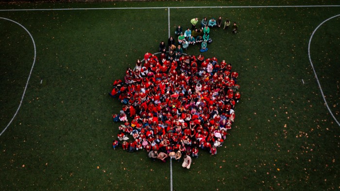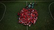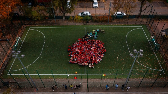 A drónfelvételről jól látható, hogy nem véletlenül kellett ma pirosban jönni, mert piros almát formáztunk!
