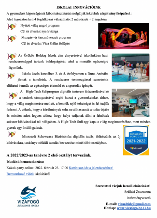 Bemutatkozó videó az iskolai honlapon vagy https://www.youtube.com/watch?v=meVJb-oT3HQ.